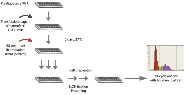 High-throughput loss-of-function screening allows a systematic and large-scale quantitative analysis and functional annotation of all genes in the genome. With homogeneous and pathway-specific reporter assays only giving very limited information about cellular phenotypes, high-content microscopy combined with image analysis provides a multi-dimensional and quantitative single-cell readout of loss-of-function phenotypes.